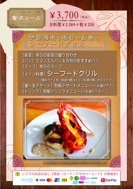 ❖伊勢海老と本日のお魚 シーフードグリル❖
