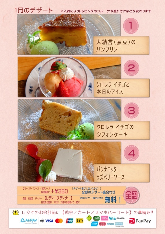 本日の前菜/パン/本日のスープ/メイン料理/デザート&ドリンク